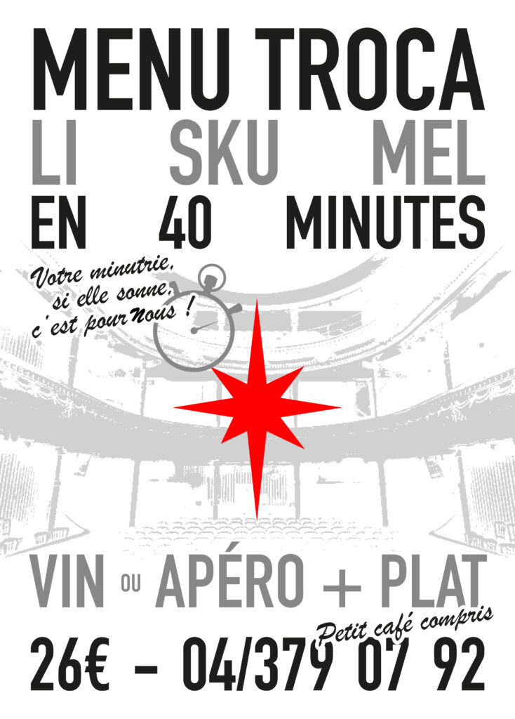 Menu avant Troca Forum Théâtre, si dans les 40 minutes vous n avez pas reçu votre plat l addition sera pour nous!